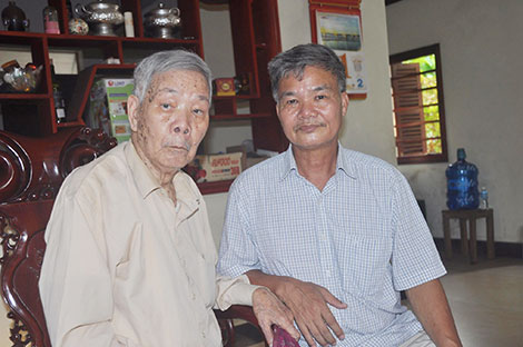 | Ông Đoàn Như Vĩnh bên cha – cụ giáo Đoàn Trấn. Ảnh: Trần Minh. |