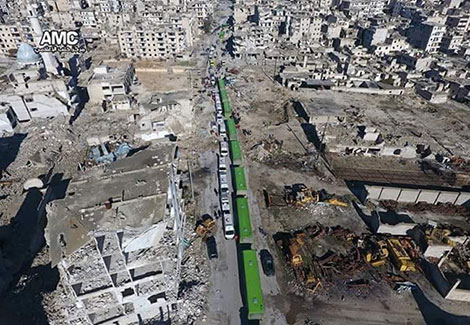 Hãng tin Reuters ngày 15-12 dẫn nguồn tin Ủy ban Chữ thập đỏ quốc tế cho biết, hoạt động sơ tán hàng trăm người bị thương ở Aleppo đã hoàn thành. Những chiếc xe buýt tiến vào khu vực phiến quân nắm giữ để sơ tán những tay súng cuối cùng còn sót lại. Đài truyền hình nhà nước Syria cho biết, ít nhất 4.000 phiến quân và gia đình của họ được sơ tán khỏi các khu vực cuối cùng do phiến quân kiểm soát ở Aleppo.