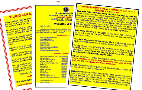 | Những lời giải thích mị dân để lừa đảo, lôi kéo người tham gia “trưng cầu dân ý”. |