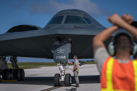 | Máy bay ném bom chiến lược của Mỹ tại đảo Guam. Ảnh: Stars and Stripes. |