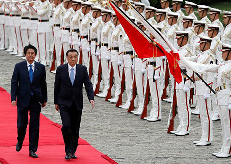 | Nghi lễ đón Thủ tướng Trung Quốc Lý Khắc Cường thăm Nhật Bản. Ảnh: The Japan Times. |