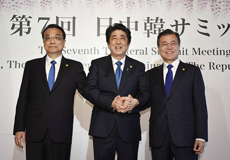 | Lãnh đạo Trung Quốc - Hàn Quốc - Nhật Bản tại cuộc họp thượng đỉnh. Ảnh: japantimes.co.jp. |