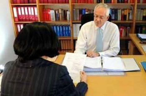 Nguyên đơn Gabriela S. thảo luận cùng luật sư W. Nau (áo trắng).