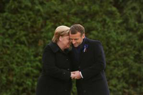 | Thủ tướng Đức Angela Merkel và Tổng thống Pháp Emmanuel Macron ở Compiegne (Pháp). |