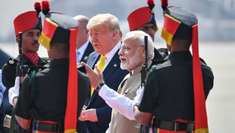Theo tường thuật của AFP, thành phố Ahmedabad, bang Gujarat - bang quê nhà của Thủ tướng Narendra Modi, đón tiếp Tổng thống Mỹ như một hoàng đế trong sự kiện mang tên “Namaste Trump” (Xin chào ông Trump) nhằm đáp lễ cuộc mít-tinh lớn “Howdy Modi” tổ chức tại Houston, Texas nhân dịp Thủ tướng Ấn Độ đến Hoa Kỳ hồi tháng 9-2019: Với 28 tấm biển khổng lồ được triển khai trên nhiều kilomet dọc theo lộ trình của ông Donald Trump, trước khi 3.000 nghệ sĩ biểu diễn tại một sân vận động 110.000 người đã chờ ông từ 4h sáng. Trước đó, ông Trump viết trên Twitter rằng “có 6-10 triệu người” sẽ chào đón ông ở Ấn Độ.