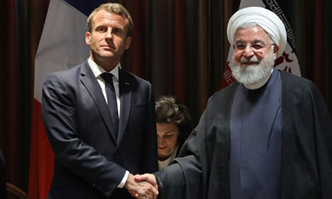 | Tổng thống Pháp Emmanuel Macron và Tổng thống Iran Hassan Rouhani bên lề Đại Hội đồng Liên Hiệp Quốc khóa 74. |