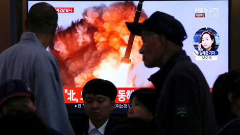 | Truyền hình Hàn Quốc đưa tin về vụ thử nghiệm của Triều Tiên ngày 14-12. |
