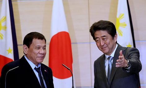 | Tổng thống Philippines Rodrigo Duterte và Thủ tướng Nhật Shinzo Abe tại Tokyo, ngày 26-10. |