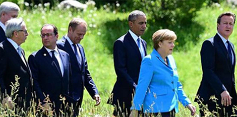 Trước hết, đáp ứng lời kêu gọi của Tổng thống Mỹ Barack Obama về việc “đứng lên chống lại sự xâm lược của Nga”, các nhà lãnh đạo G7 khi họp tại Đức ngày 8/6, đã cam kết duy trì các biện pháp trừng phạt Moscow cho đến khi Tổng thống Vladimir Putin và phe ly khai Ukraine thực thi đầy đủ thỏa thuận ngừng bắn ký tại thủ đô Minsk - Belarus hôm 12/2/2015.