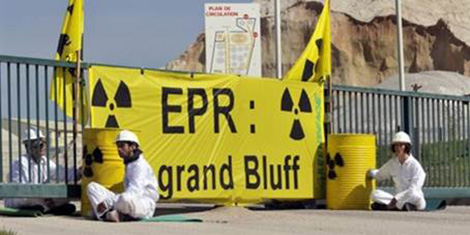 | Biểu tình chống lò phản ứng hạt nhân theo công nghệ EPR trước nhà máy điện Flamanville. |