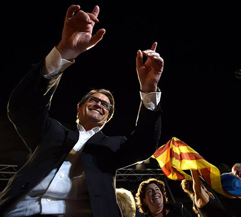 | Ông Artur Mas - Chủ tịch Junts pel Si mừng chiến thắng. |
