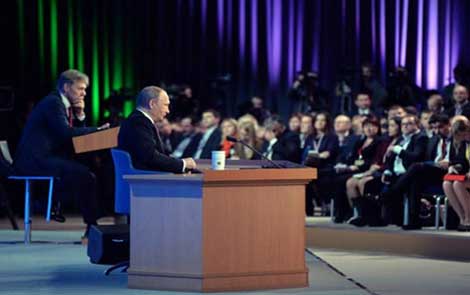 | Tổng thống Putin tại buổi họp báo thường niên. |