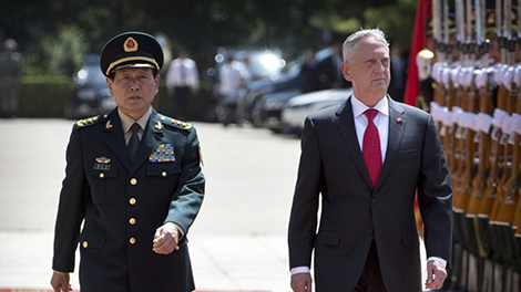 | Bộ trưởng Quốc phòng Mỹ James Mattis trong chuyến thăm Trung Quốc cách đây 6 tháng. Ảnh: South China Morning Post. |