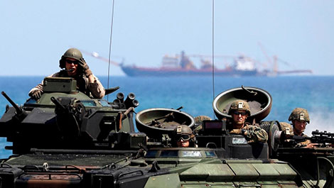 | Lính thủy đánh bộ Mỹ trong một cuộc tập trận với quân đội Philippines. Ảnh: Reuters. |