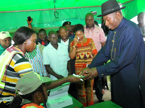 Ngay bản thân Tổng thống G. Jonathan cũng lâm vào tình trạng "dở khóc dở cười", khi cùng Đệ nhất phu nhân Patience Jonathan đi bầu tại điểm bầu cử tại làng Otuoke, ngoại vi thị trấn Ogbia, bang Bayelsa, là nơi sinh trưởng của Tổng thống Jonathan.