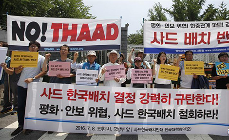 | Người dân Hàn Quốc phản đối triển khai THAAD ở nước này. Ảnh: xinhuanet.com. |