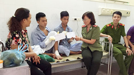Thăm và tặng quà các chiến sĩ Cảnh sát PCCC Hà Nội bị thương khi làm nhiệm vụ