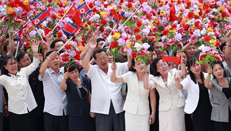| Người dân Triều Tiên vẫy chào Chủ tịch Trung Quốc trên đường phố Bình Nhưỡng ngày 20-6. |