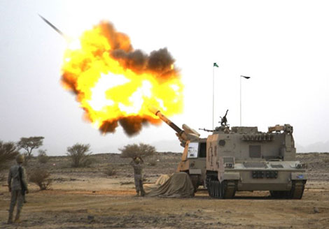 | Pháo binh Saudi Arabia đang pháo kích vào vị trí của phiến quân ở Yemen. Ảnh: Reuters. |