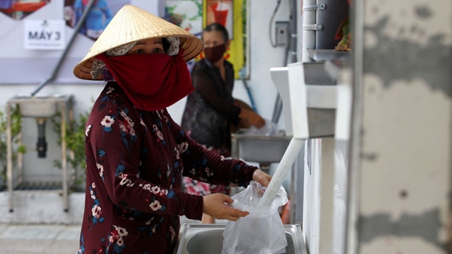 Người dân lấy gạo ở cây ATM. Ảnh: Reuters.