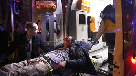 Các nhân viên y tế đưa người bị thương ra khỏi hiện trường vụ nổ bom tại Ankara, ngày 17/2.