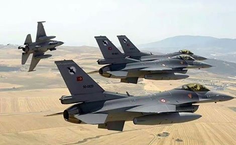 | Máy bay Thổ Nhĩ Kỳ không kích IS và YPG ở Syria. |