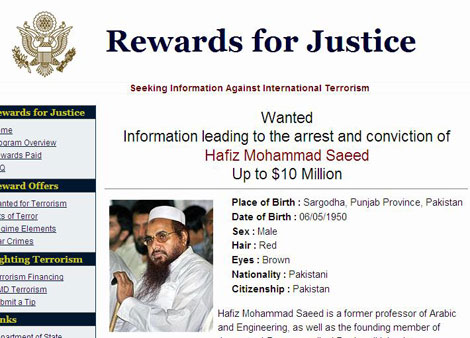 Trang web của chương trình “Rewards for Justice” (tạm dịch: Giải thưởng cho Công lý) mô tả Hafiz Saeed là “công dân Pakistan” với “tóc đỏ” và “mắt nâu”. “Rewards for Justice” được Cơ quan An ninh Ngoại giao (DSS) trực thuộc Bộ Ngoại giao Mỹ thiết kế để chống khủng bố quốc tế và chương trình đã chi trả hơn 125 triệu USD cho thông tin ngăn chặn được những cuộc tấn công khủng bố quốc tế hay giúp bắt giữ những phần tử khủng bố.
