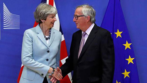 | Thủ tướng Anh Theresa May và Chủ tịch Ủy ban châu Âu Jean-Claude Juncker tại Bruxelles ngày 8-12 sau khi châu Âu và Anh đạt được thỏa thuận về giai đoạn 1 Brexit. |