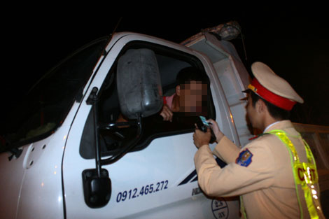 | CSGT kiểm tra nồng độ cồn với lái xe. |