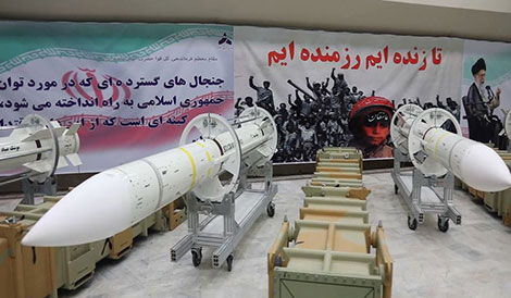 | Iran trưng bày vũ khí mới do nước này sản xuất. Ảnh: Washington Times. |