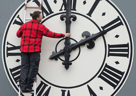| Chỉnh giờ tại Tháp đồng hồ Saint Luc de Dresde ở Đức. Ảnh: AFP. |