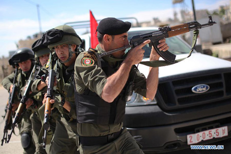 Lực lượng Palestine tham gia khóa huấn luyện quân sự ở thành phố Bethlehem. |
