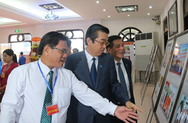 | Các đại biểu tham quan một số hình ảnh trưng bày tại Đại hội. |