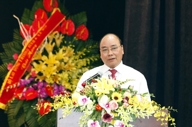 | Thủ tướng Nguyễn Xuân Phúc phát biểu tại buổi gặp mặt. (Ảnh Phạm Hải). |