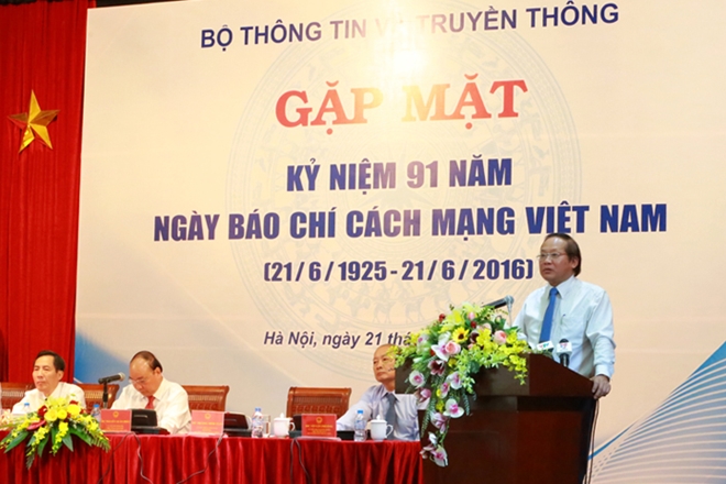 Tại buổi gặp mặt, Bộ trưởng Bộ TT&TT Trương Minh Tuấn nhấn đã mạnh sự trưởng thành vượt bậc, cả về số lượng, nội dung hình thức lẫn chất lượng thông tin của báo chí cách mạng trong 91 năm qua.