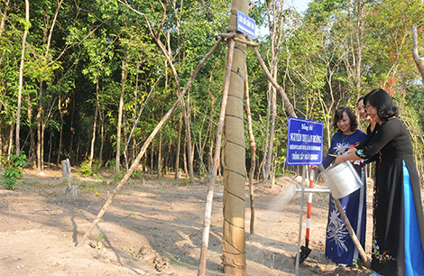 | Các đại biểu trồng cây lưu niệm tại Khu Di tích Bộ Chỉ huy Miền Tà Thiết. |
