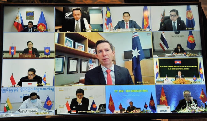 Đặc biệt, ASEAN ưu tiên cho cho việc ký kết Hiệp định Đối tác toàn diện khu vực (RCEP) vào cuối năm nay. Các Bộ trưởng tin tưởng rằng việc ký kết RCEP sẽ là cơ sở để củng cố niềm tin của cộng đồng doanh nghiệp và làm bền vững hơn cấu trúc của kinh tế khu vực, cũng như thể hiện sự ủng hộ của khu vực đối với Hệ thống thương mại đa phương mở, đồng bộ và dựa trên nguyên tắc. Đồng thời nhấn mạnh vai trò của RCEP trong việc phục hồi kinh tế sau đại dịch COVID-19, góp phần quan trọng cho sự tăng trưởng ổn định của nền kinh tế thế giới và khu vực