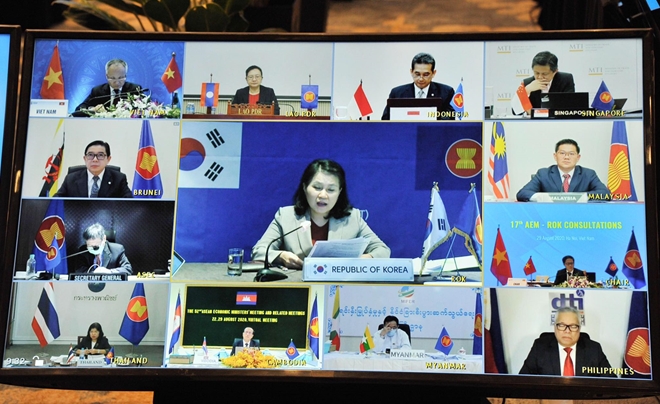 Tại Hội nghị tham vấn với Hàn Quốc, các Bộ trưởng ASEAN và Hàn Quốc ghi nhận sự ảnh hưởng tiêu cực của đại dịch COVID-19 tới cuộc sống của nhân dân và xã hội trong toàn khu vực.