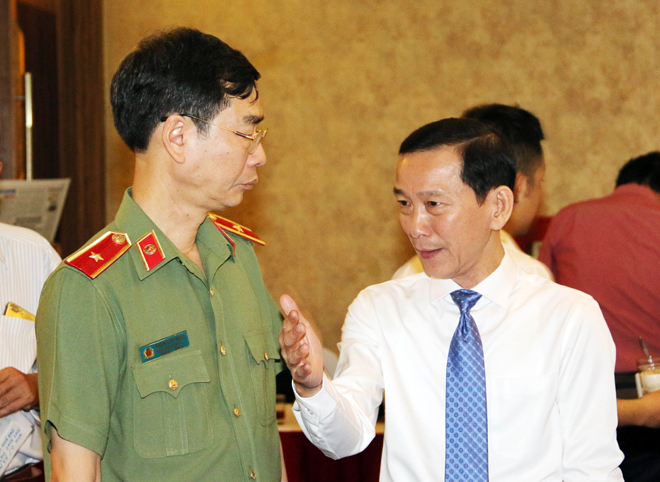 | Ông Võ Thành Thống, Chủ tịch UBND TP Cần Thơ, trao đổi với Thiếu tướng Phạm Văn Miên, Tổng Biên tập Báo CAND, tại Hội nghị toàn quốc triển khai công tác năm 2019 của Hội Nhà báo Việt Nam ngày 19-4 vừa qua |