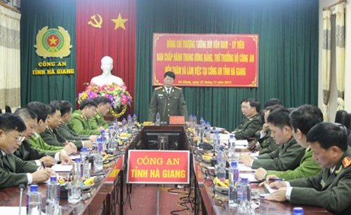Phát biểu tại buổi làm việc, Thứ trưởng Bùi Văn Nam ghi nhận, biểu dương những đóng góp của lực lượng Công an tỉnh Hà Giang trong công tác giữ gìn ANTT trên địa bàn. Thứ trưởng Bùi Văn Nam nhấn mạnh, Công an tinh Hà Giang tiếp tục nắm chắc tình hình, làm tốt chức năng tham mưu cho cấp uỷ và chính quyền địa phương trên lĩnh vực an ninh trật tự; bảo đảm bảo tuyệt đối an toàn Đại hội Đảng Toàn quốc và Tết nguyên đán sắp tới; phối hợp chặt chẽ với quân đội, biên phòng, góp phần bảo vệ tốt an ninh biên giới; tăng cường công tác quản lý nhà nước về ANTT; nhân rộng các mô hình điển hình về bảo đảm ANTT và phong trào toàn dân bảo vệ an ninh Tổ quốc…