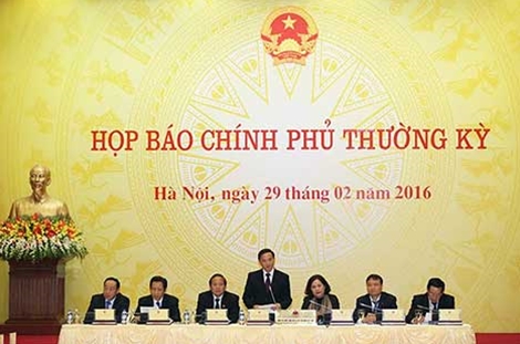 | Phó Chủ nhiệm Văn phòng Chính phủ Nguyễn Khắc Định trả lời tại buổi họp báo chiều 29-2. |