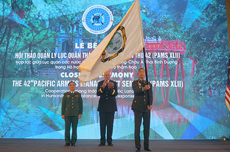 Tại buổi lễ, Đại tướng Robert B.Brown và Thượng tướng Phạm Hồng Hương đã trao chứng chỉ và quà tặng cho đại diện Đoàn lực lượng Lục quân các nước tham dự Hội thảo; bàn giao cờ cho Trưởng Đoàn Thái Lan, nước chủ nhà Hội thảo PAMS lần tới./.