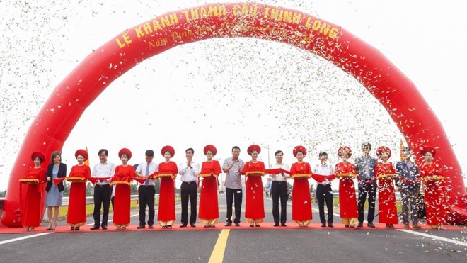 Sáng 28/5, Bộ GTVT phối hợp với UBND tỉnh Nam Định tổ chức lễ thông xe, đưa vào khai thác cầu Thịnh Long.