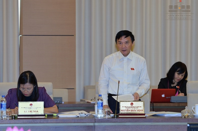 | Chủ nhiệm Uỷ ban Pháp luật Nguyễn Khắc Định thảo luận tại phiên họp |