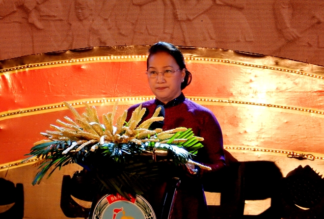 Chủ tịch Quốc hội Nguyễn Thị Kim Ngân cho rằng, trong tiến trình chung của đất nước, Bến Tre cũng có sự vươn lên, chuyển mình, thay da đổi thịt từ mảnh đất ba dải cù lao, bị chia cắt, nay đã trở thành một vùng đất thu hút sự quan tâm của các nhà đầu tư, bạn bè trong nước và thế giới. Trong giây phút xúc động, thiêng liêng này, mỗi chúng ta lại càng ý thức sâu sắc hơn bao giờ hết về trách nhiệm to lớn của mình trong việc gìn giữ và phát huy mạnh mẽ truyền thống dân tộc để đóng góp vào công cuộc xây dựng quê hương, đất nước của ngày hôm nay, sao cho xứng đáng với truyền thống, sự hy sinh xương máu của các thế hệ cha ông.