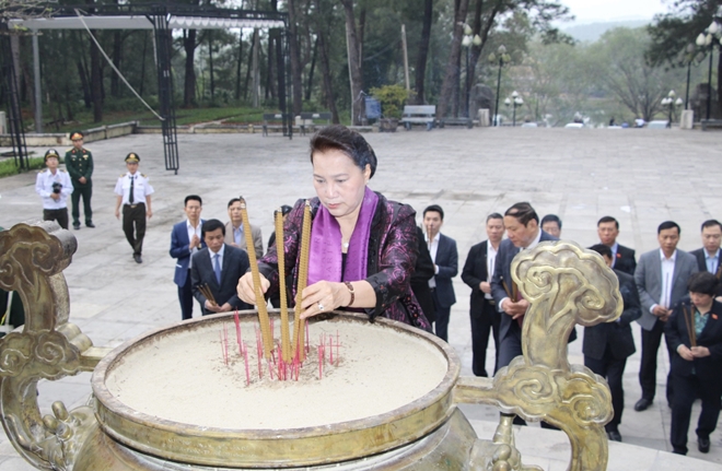 | Chủ tịch Quốc hội Nguyễn Thị Kim Ngân dâng hương tại Nghĩa trang liệt sĩ Quốc gia Trường Sơn. |