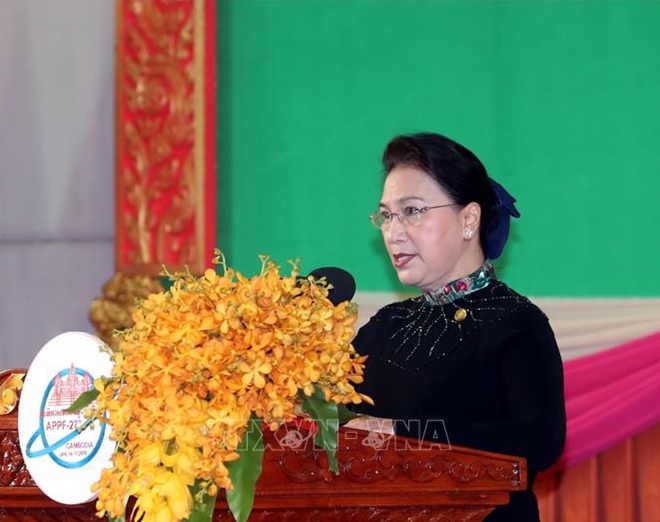 Chủ tịch Quốc hội cho biết, năm 2018, APPF-26 được tổ chức tại Việt Nam với Tuyên bố Hà Nội đánh dấu chặng đường 25 năm phát triển của APPF, mở ra một tầm nhìn mới cho quan hệ đối tác nghị viện châu Á - Thái Bình Dương tới năm 2030. APPF đã thành công trong việc thúc đẩy quan hệ đối tác giữa APPF với APEC nhằm hiện thực hóa nguyện vọng của người dân châu Á - Thái Bình Dương về một khu vực hòa bình và phát triển, phản ánh một xu thế của nền ngoại giao nghị viện trong giai đoạn phát triển mới của nhân loại.