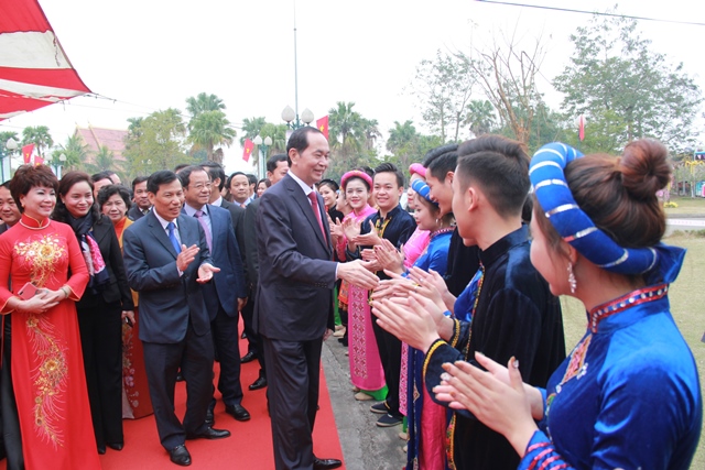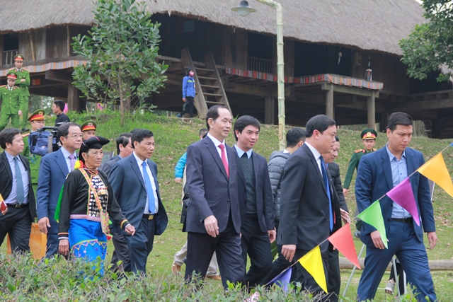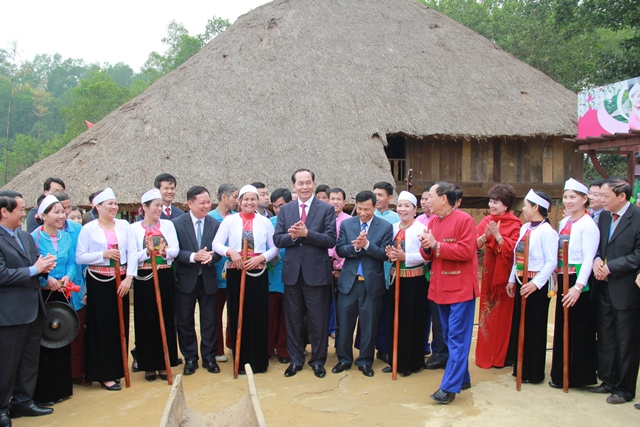 | Chủ tịch nước Trần Đại Quang thăm làng dân tộc Mường. |