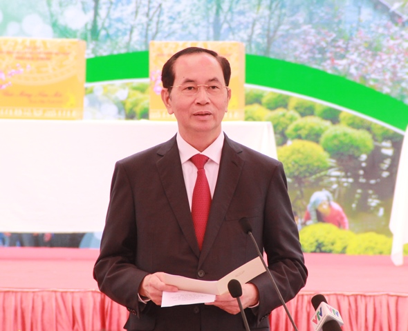 | Chủ tịch nước Trần Đại Quang chúc mừng năm mới đồng bào. |