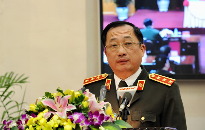 | Thượng tướng Nguyễn Văn Thành, Thứ trưởng Bộ Công an phát biểu tại Diễn đàn “Tuổi trẻ xung kích bảo vệ Tổ quốc Việt Nam xã hội chủ nghĩa”. |